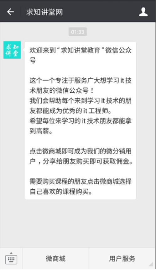 | 进入到“求知讲堂网”微信公众号 点击微商城 如下: |